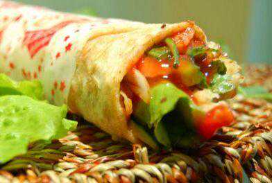 首先草篓上先放那个纸,记到一定带手套操作,然后把炸好的饼放在纸上面,开始刷酱,一般酱分5分之几来刷,黑酱刷5分之3,沙司刷5分之2,接下来我们假设做飘香卤肉的,就把卤肉挨到饼中间位置放一排,然后放黄瓜两到3条,生菜适量也放点,大葱白切丝放一排,这里面为什么我总要说放一排是要客人每一口下去都咬到所有材料,然后问客人要辣椒多少,放辣椒油就可以了,用小勺淋在上面,在加点香菜,其他可以准备点花椒粉开客人的需要放,卷饼的方法是,先卷一半的时候把要拿手的一边托起来,在一直卷完,在把纸卷上纸也是下面托起来卷,这样就是说不会漏油出来!