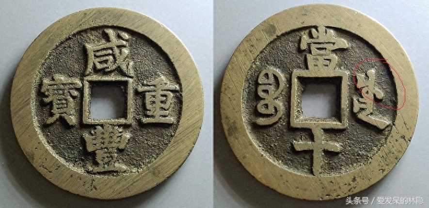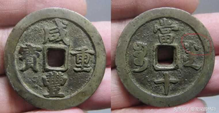 咸丰重宝宝川局当十版别:如图所示:咸丰重宝宝川局当十钱中的小字版,此版为小字版中的出点川,小字版中的名誉品咸丰重宝宝川当十钱字口很容易黏连糊住,字口清晰者少,小字川较大字川稍贵点,现在是品相派当道,字口清晰的美品宝川一般大概在300-500左右,通货的也就100多,看脸的时代