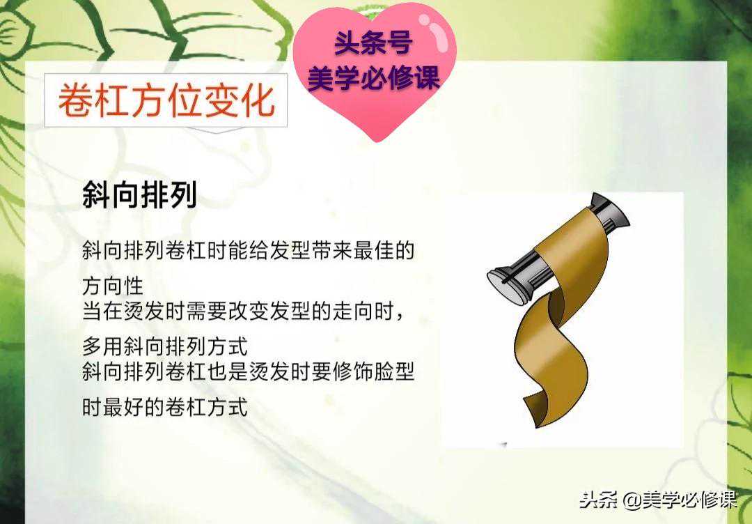 当在烫发时需要改变发型的走向时,多用斜向排列方式。