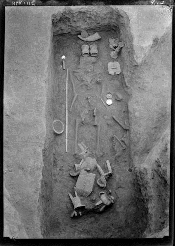 注:1002墓为西北冈第一次、第二次两次发掘所挖,是西北冈诸墓地中最先完成的大墓。发掘至坑底离地面11公尺深时遇地下水面,只能将遗物起出并找到坑底,并确定有木质墓室的存在,但现象图、观察、图像等记录手续皆难以进行。