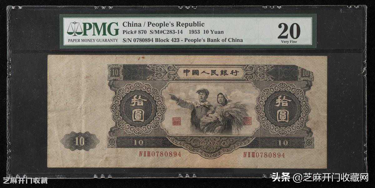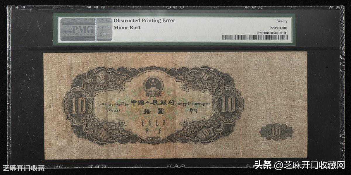 1:1953年第二版人民币拾圆一枚,漏印,罕见,PMG20,估价:RMB200000,成交价格:RMB517500