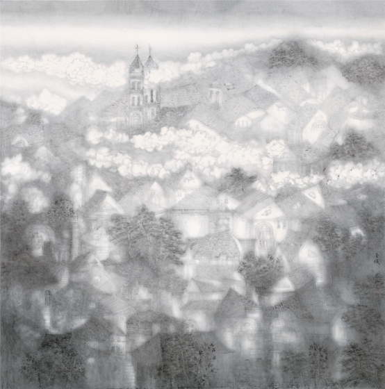 《圣域—苍茫云霭溢清澄》200cm×200cm2014年第十二届全国美展入选作品