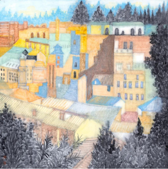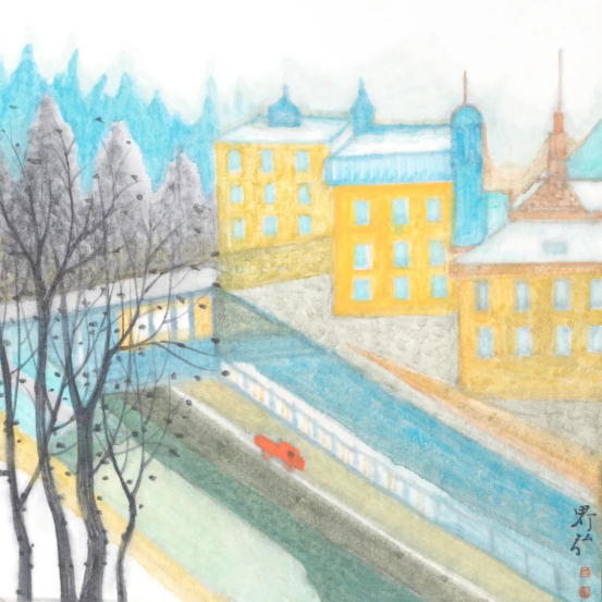 看那江南水色清幽淡雅,而西南却有部落风情,平缓连绵的山峦映带,温润清净的草木泽生,素雅苍茫的水天一色,渔舟唱晚的自娱天趣,均是在平常里隐喻着另一番天地。师界弘在各地的写生作品里,不着痕迹地异域留痕、合而并用。她的韵味,藏匿着一颗颗细腻的诗心,得慢慢品。