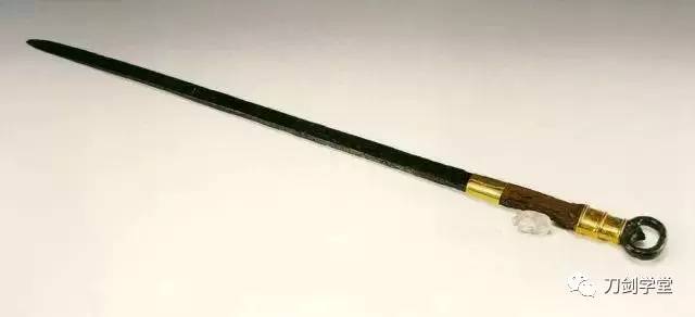 柄上金具为素面黄金质,环为铁制,环中有三角形突起。