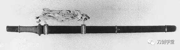 图31:正仓院中仓8第7号金铜荘大刀,该刀柄缠麻丝柄髹黑漆。