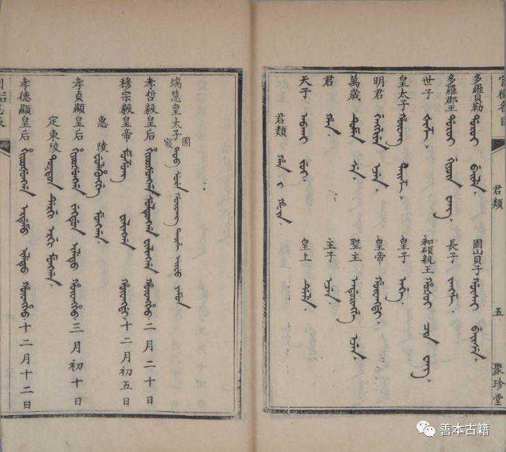 清朝还编纂了几部语文工具书,其中以《御制五体清文鉴》为大宗,所谓“五体”即满、藏、蒙、维、汉五种语言,一个满语词语下,依次列有藏文译文、蒙文译文、维吾尔文译文、汉文译文,是了解少数民族语言及其与汉文互译的重要资料,此书仅有抄本存世,并无刻本,其中一部抄本即存于故宫,此外故宫还存藏有《音汉清文鉴》《增定清文鉴》《满洲蒙古汉字三合切音清文鉴》等。
