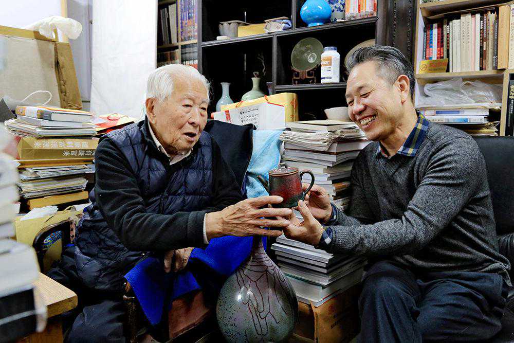 故宫博物院研究员、故宫博物院学术委员会委员、国家文物鉴定委员会副委员耿宝昌老师在北京故宫亲切接待翟群先生并对翟群钧瓷作品大加赞赏,欣然为翟群壶艺题词。