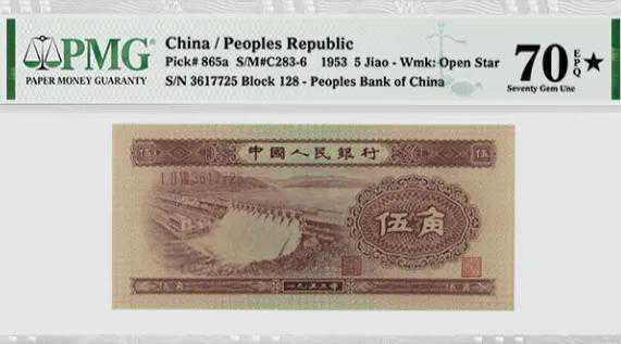 70★EPQ:最⾼等级,纸币经放⼤5倍未见触摸痕迹。裸眼所见切边和校准都居中。