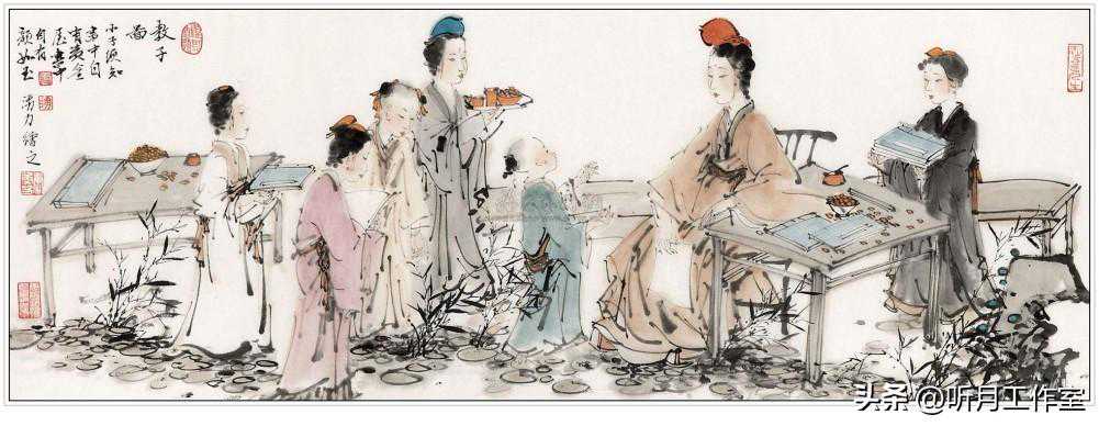 当代著名画家唐勇力《教子图》赏析