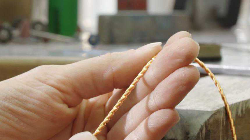 金丝编花工艺需要金匠用160米长、直径仅为0.3毫米的金线手工缠绕编织,让项链拥有如丝般细滑。
