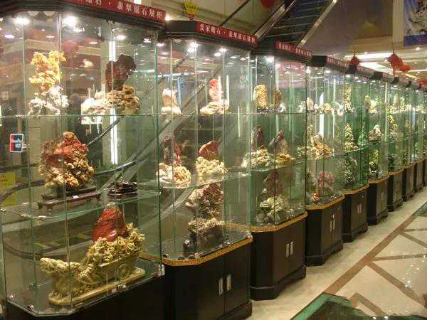 4:汉口香港路武汉文物市场约有10家奇石店铺,经营品种主要有灵璧石、戈壁石和矿物晶体等。