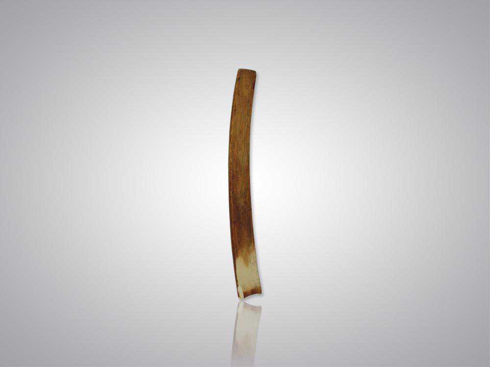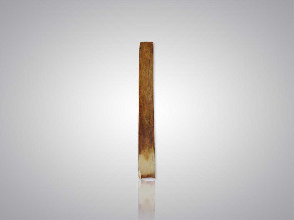朝板亦称朝笏,为官员上朝奏事时的重要器具,具有记事实用和体现等级礼仪的双重功能。这款朝板以亚洲象牙为材。材质精,用材大,十分难得。扁平近长方形,两端大小有差,呈自然的圆弧形。光素无纹,而打磨精细。品相完好,包浆温润古雅。