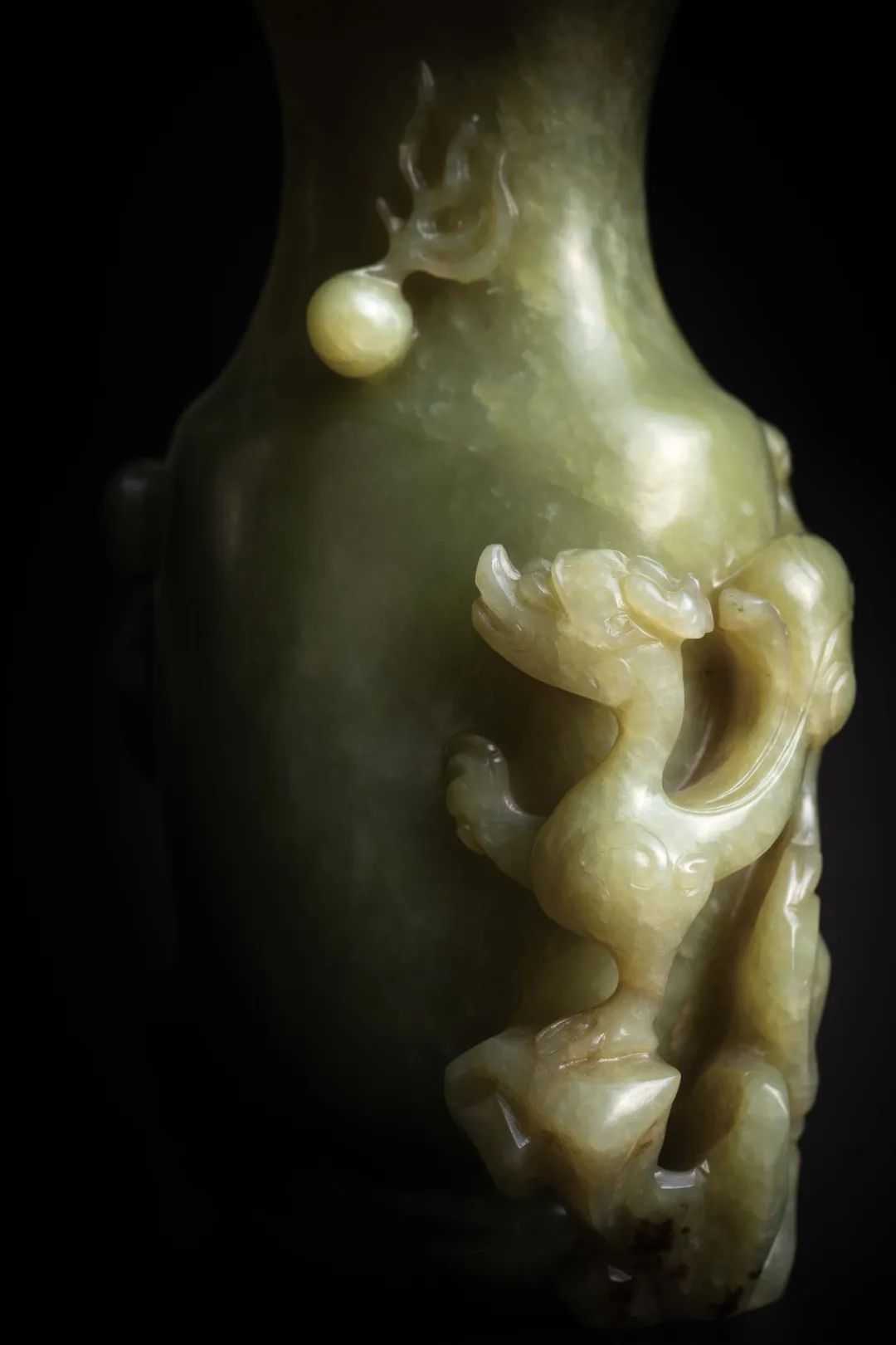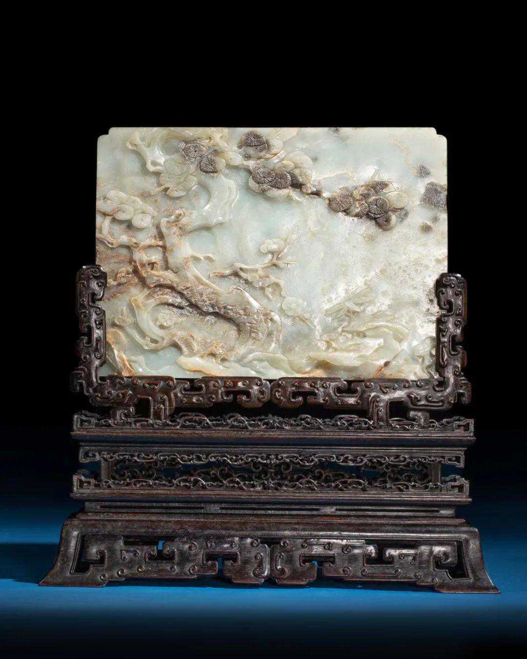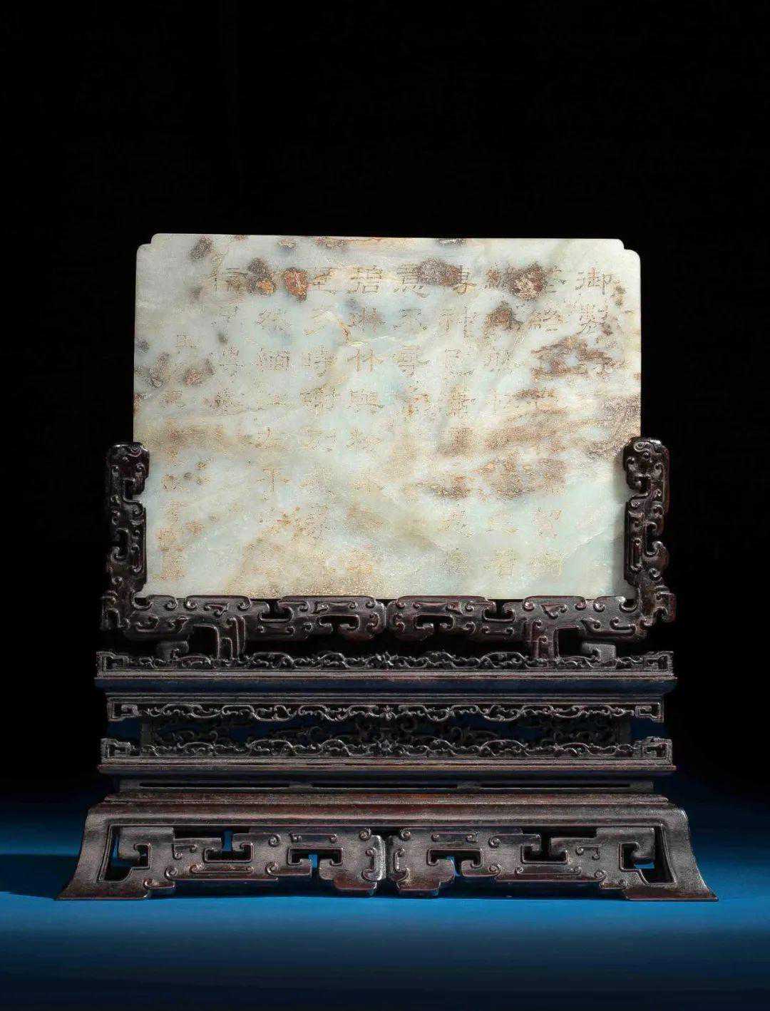 乾隆玉器基本没有出土痕迹,但本件沁色甚多令斋主意外,据藏家及行方考据,或为1928年孙殿英东陵盗宝时失窃之物。历史学者讲述:「清东陵是乾隆在位时命工匠修建,在当时就已经有漏水,1928年孙殿英盗墓时,发现淹水且乾隆棺椁挡在墓室门前,学者考证,地宫季节性淹水已经非常久的时间,曾经淹至两米深,所以棺椁曾漂浮水中移至墓室门口,而文物大部分都泡在灰浆里,乾隆生前珍惜艺术品又加上此座屏是大臣寿诞之礼,应是一同陪葬,其沁色特征相信是地宫灰浆长期浸泡之故。」