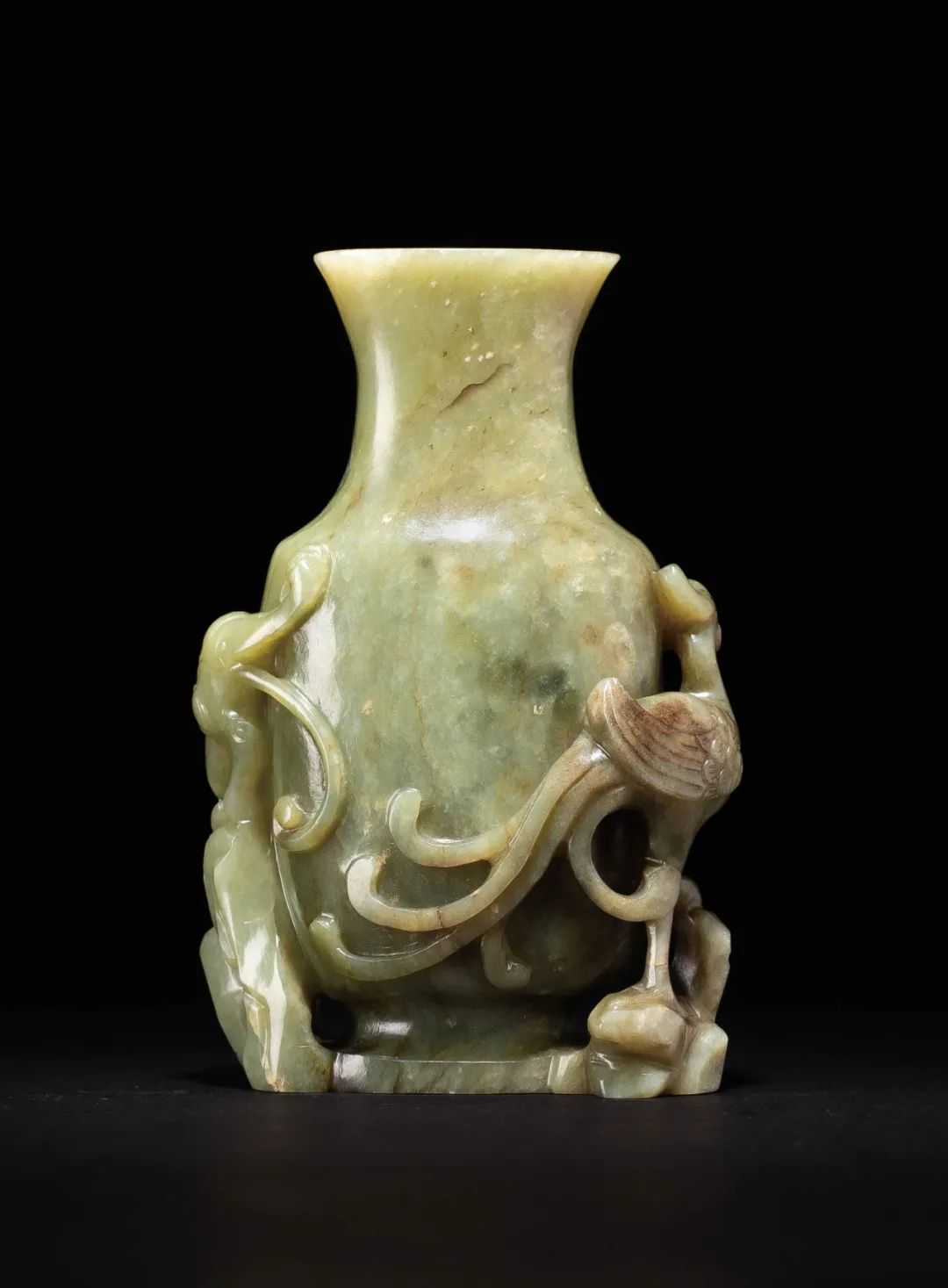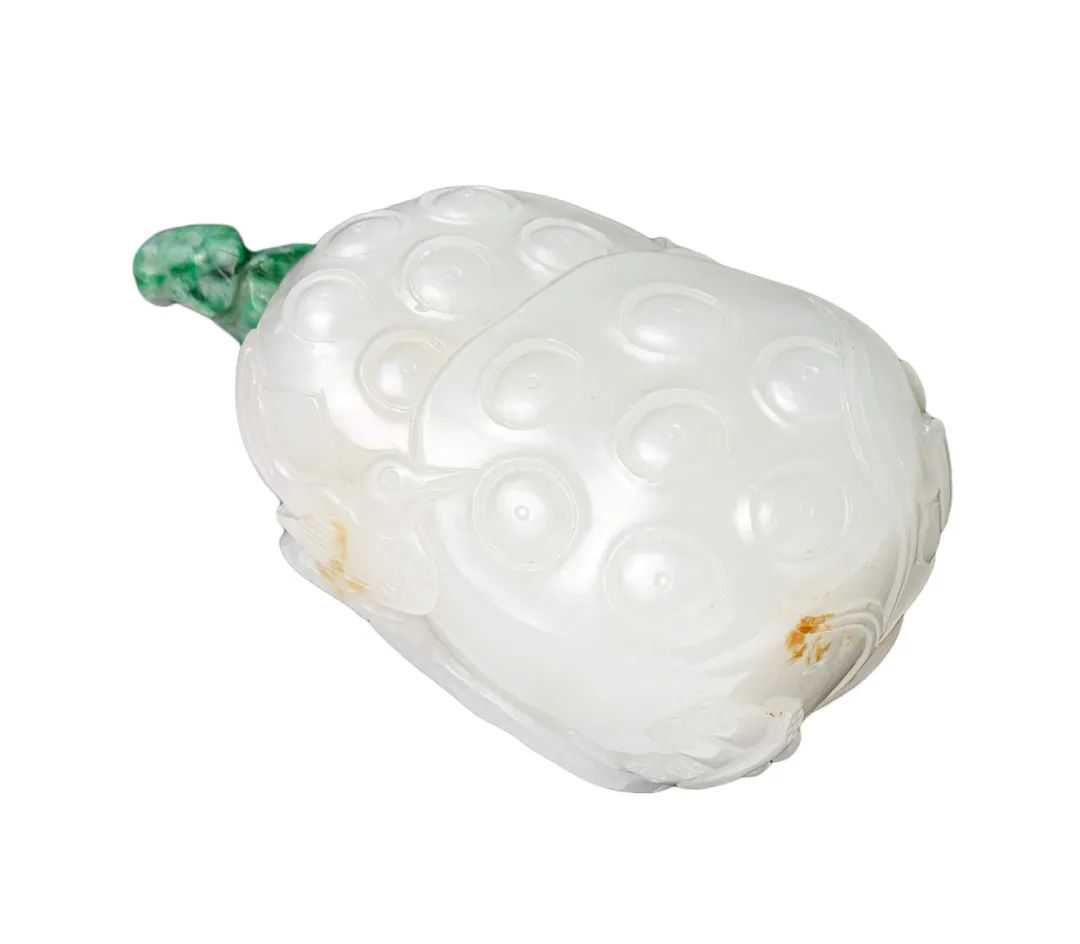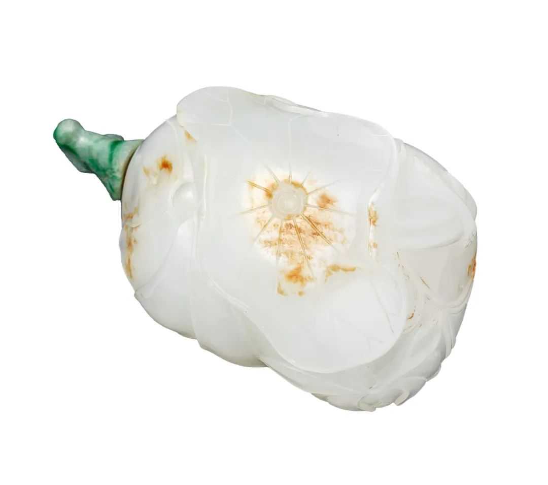 纪晓岚曾在《阅微草堂笔记》中写道:「云南翡翠玉,⋯⋯当时不以玉视之,⋯⋯今则为珍玩。盖相距五六十年,物价不同已如此,况隔越数百年矣。」从上述可知,翡翠于乾隆朝开始备受推崇与喜爱,变得十分珍贵。可回顾1990年香港苏富比,类似拍品,当年以天价473万元港币拍出,为史上最贵翡翠鼻烟壶,可资比较。