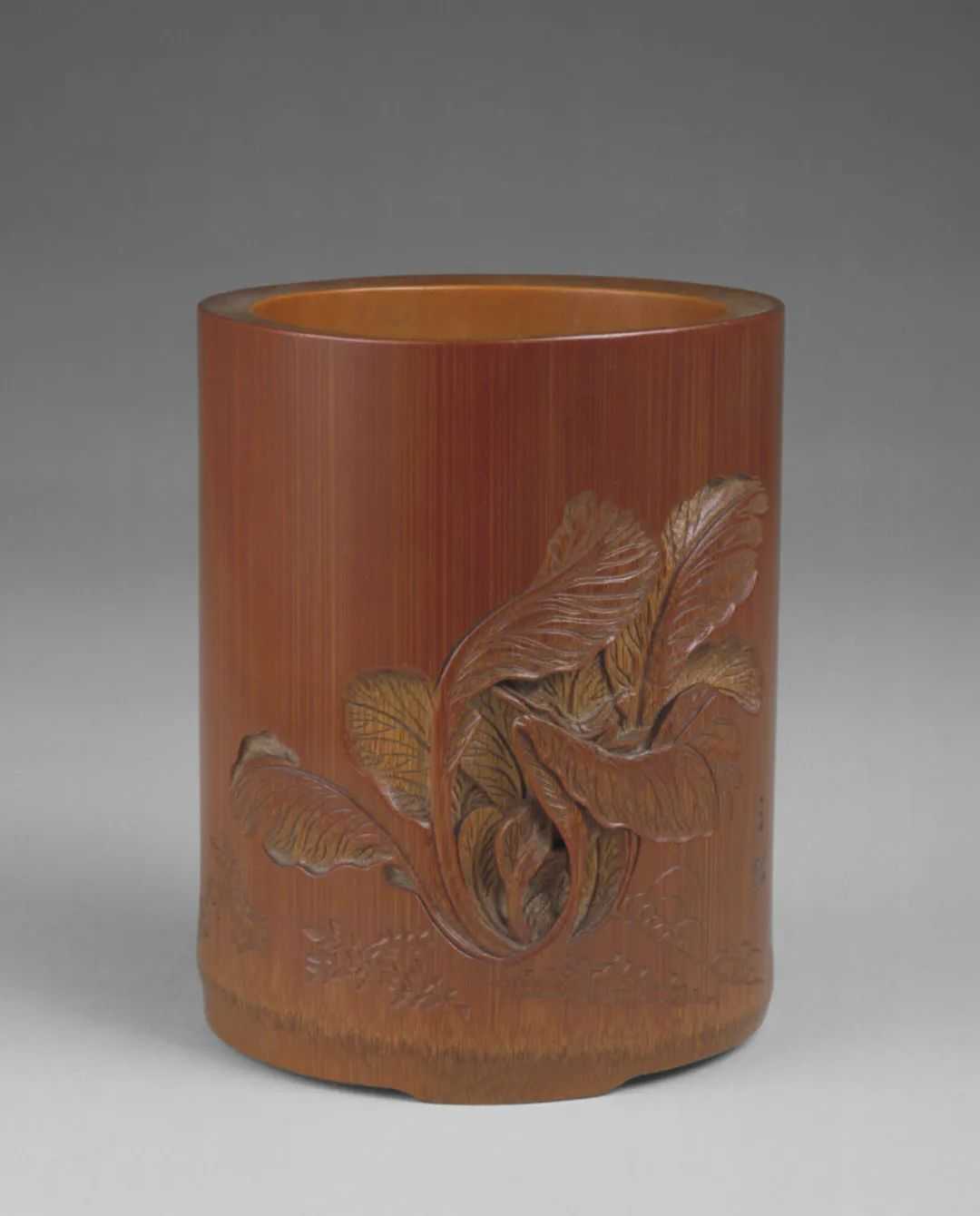 ☆参考:沈全林款竹雕草虫白菜图笔筒