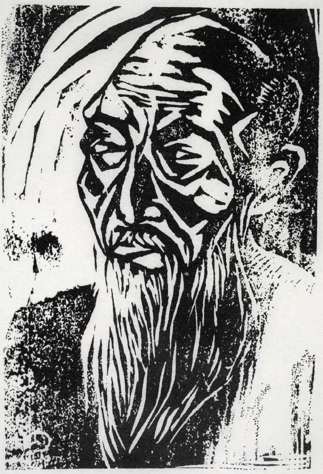 江丰老人像木刻版画17.6年