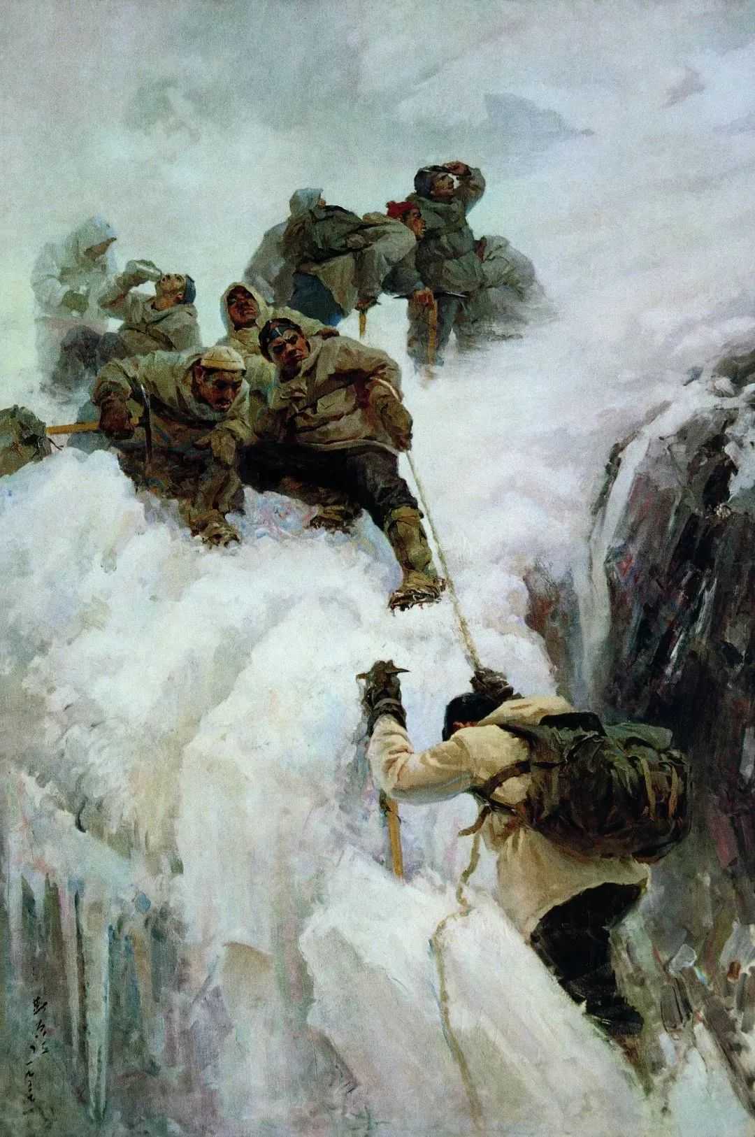 靳尚谊登上慕士塔格峰布面油彩