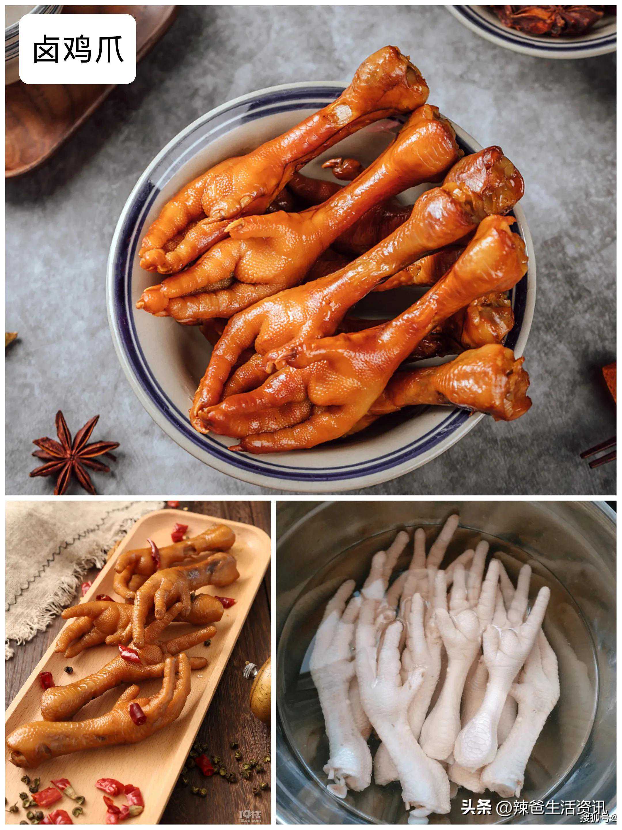 卤鸡爪,又称卤凤爪,是中国传统卤味之一,从南到北很受人们欢迎。鸡爪胶原蛋白很丰富,卤制好后,吃起来香浓Q弹,不仅是下酒好菜,也是很多人喜欢吃的零食。传统卤鸡爪需要十几二十种香料来进行卤制,家庭制作则比较简单,香料虽少但一样鲜香美味。
