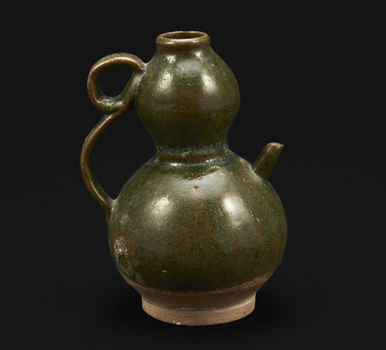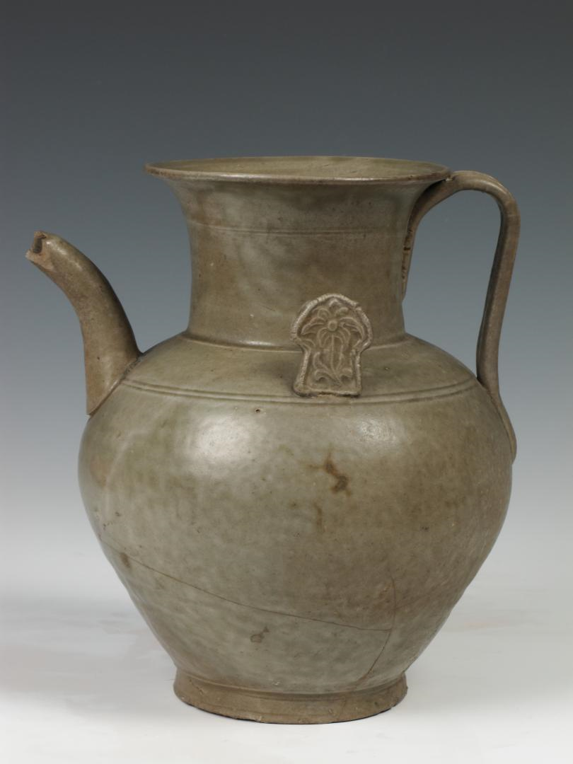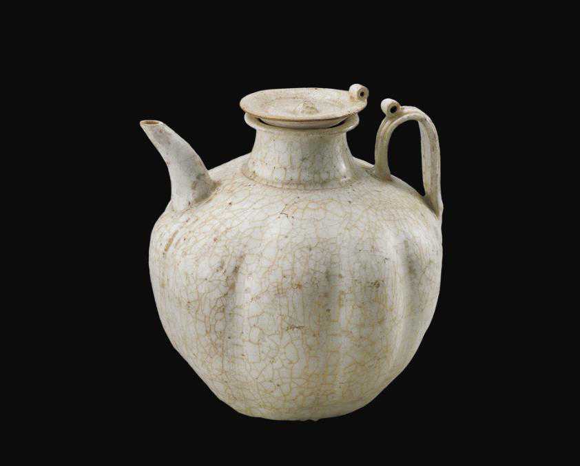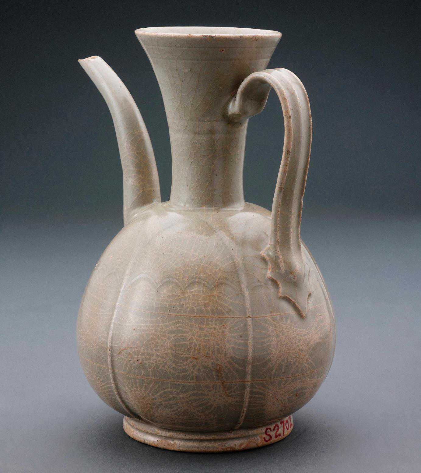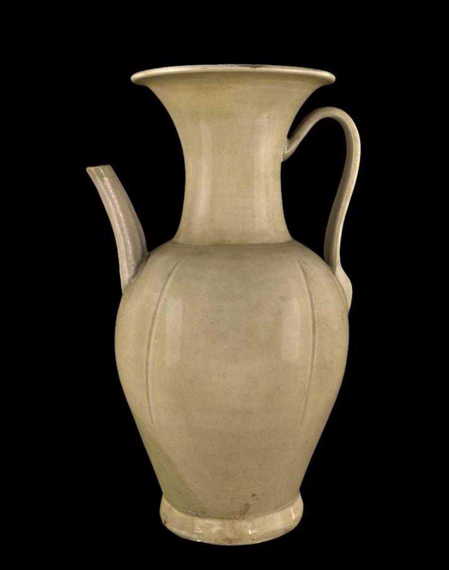宋代耀州窑青釉十三瓜棱瓷执壶