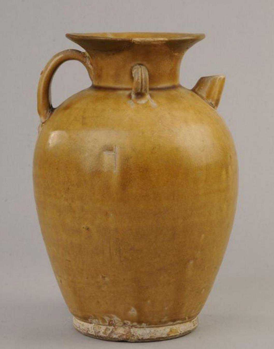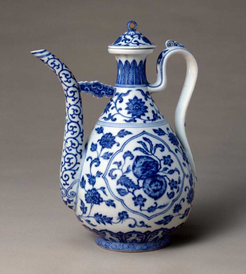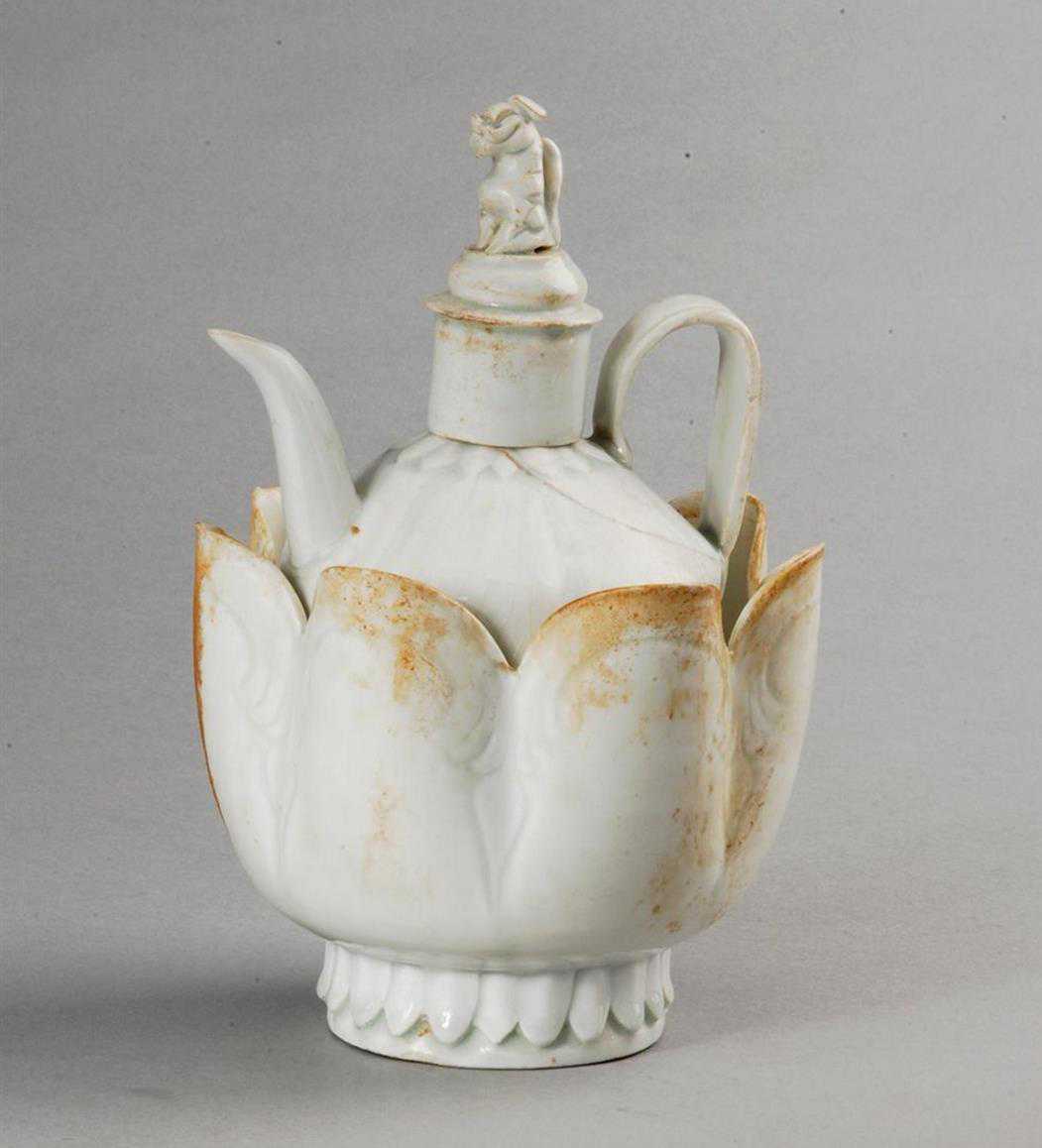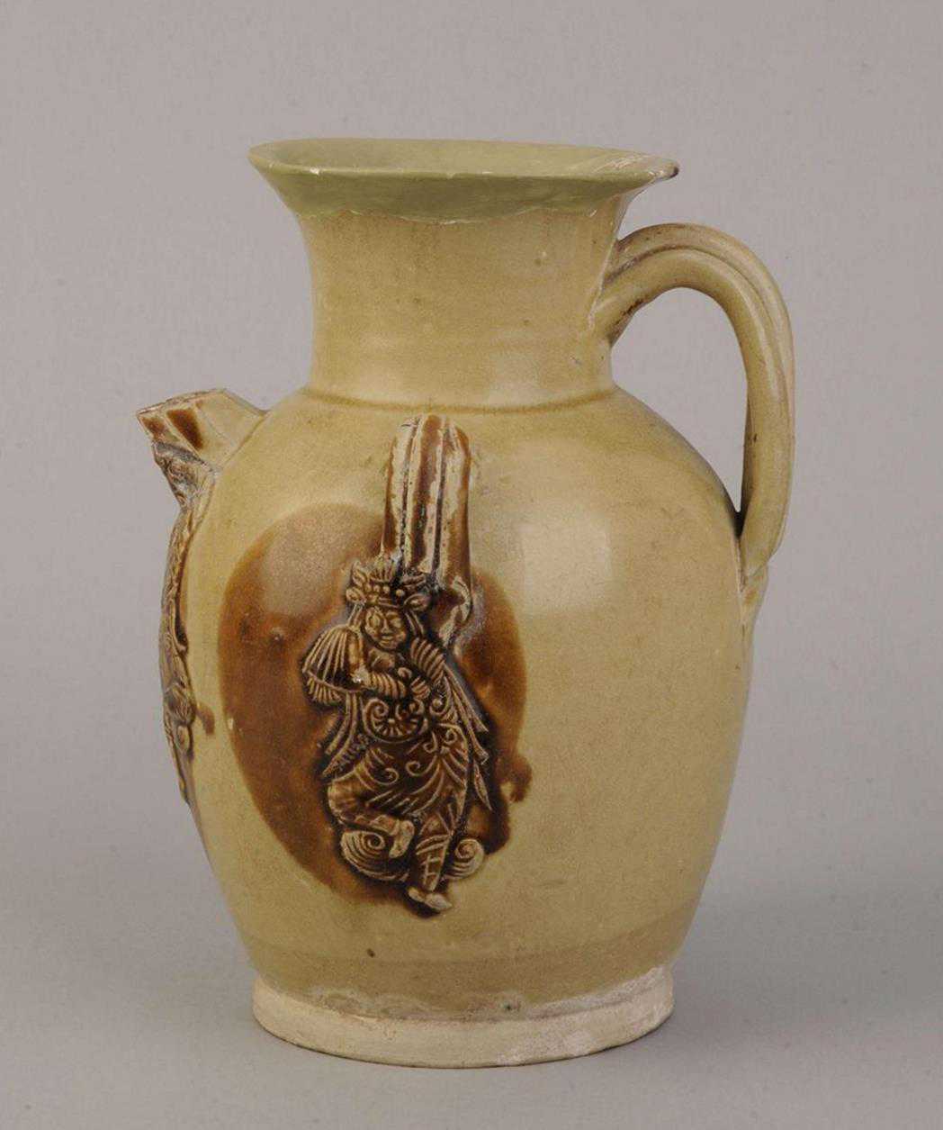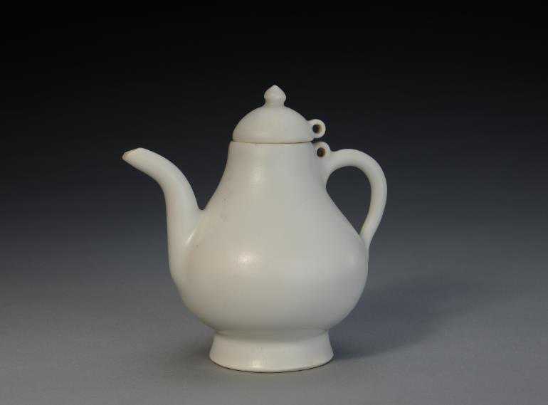 执壶最初的造型是由青铜器而来,南北朝早期的青瓷当中,已经完成了这种执壶的造型。其后在唐宋两代是金银器中的一种酒具,这从唐宋绘画上是很容易看到的。直到现在,还有宋代青白瓷的执壶流传下来。