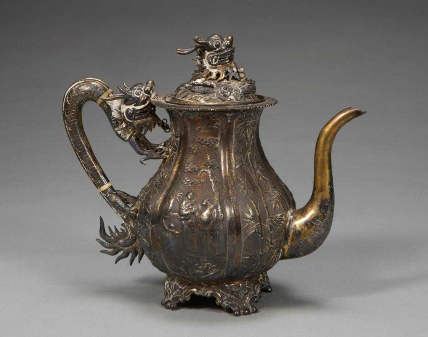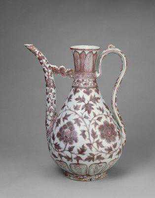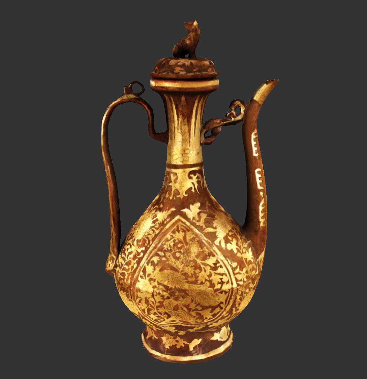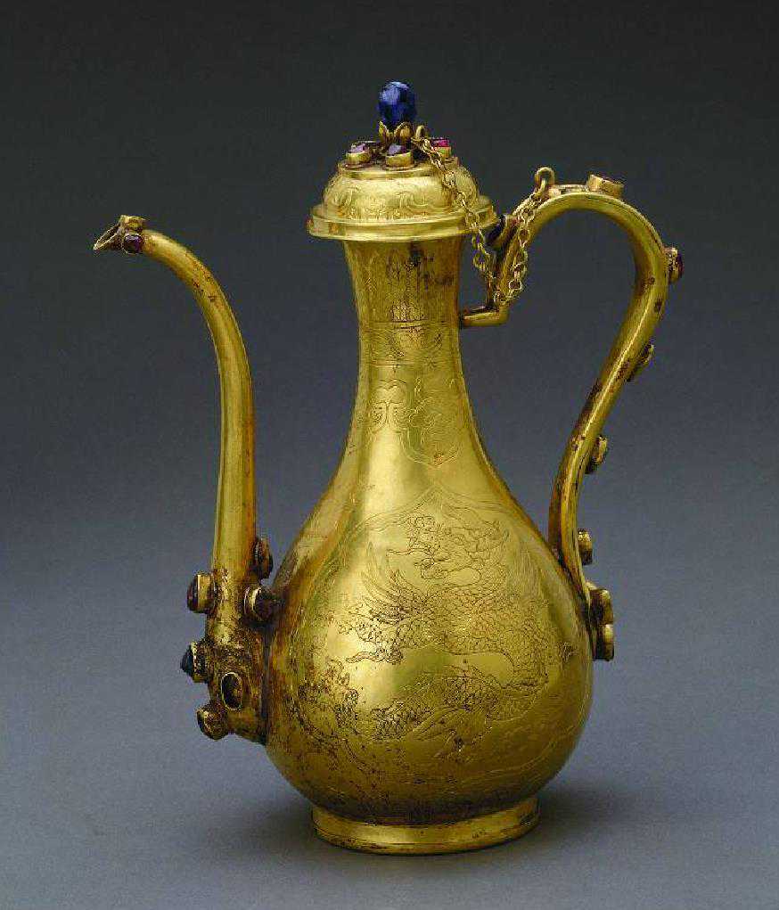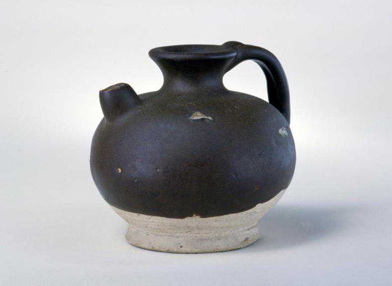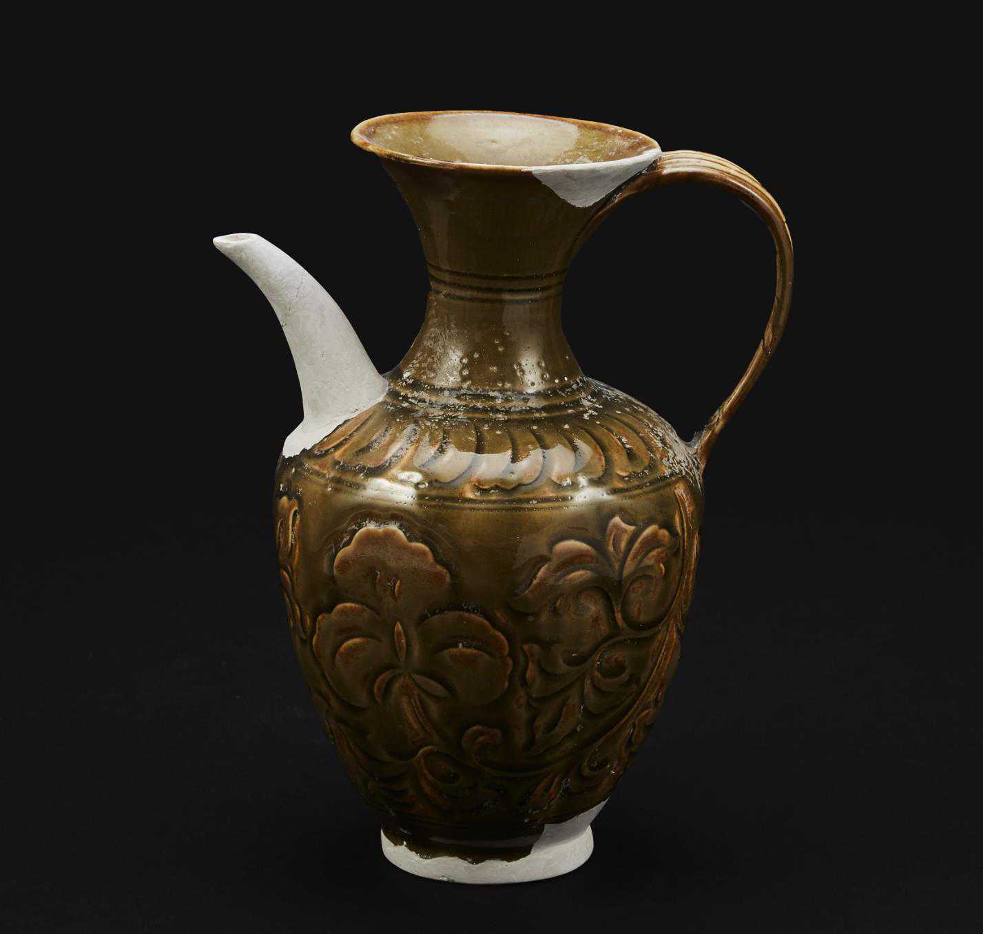 执壶最初的造型是由青铜器而来,南北朝早期的青瓷当中,已经完成了这种执壶的造型。其后在唐宋两代是金银器中的一种酒具,这从唐宋绘画上是很容易看到的。直到现在,还有宋代青白瓷的执壶流传下来。