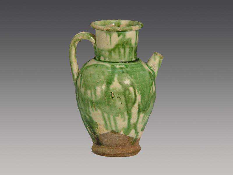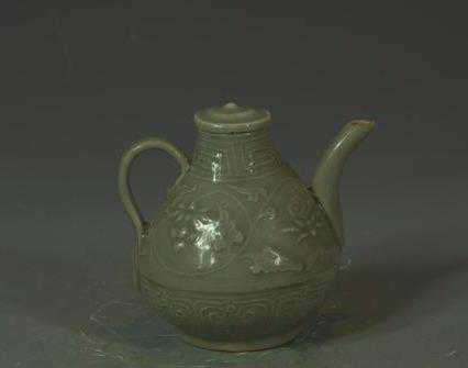 金代耀州窑青釉刻水波菊瓣纹小执壶