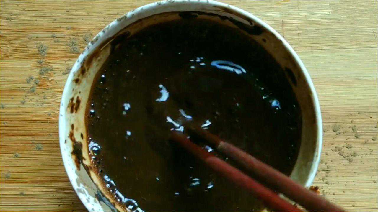 1,取一碗冷水,倒入准备好的黑凉粉,搅拌均匀。