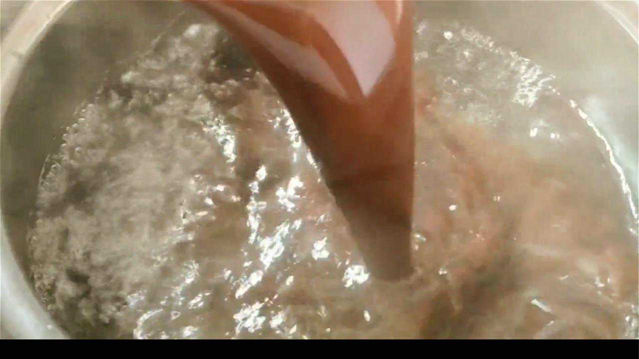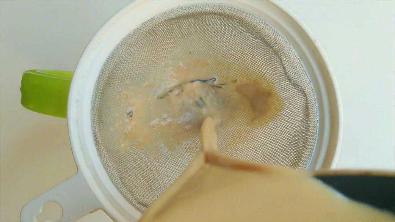 6,关闭加热后,盖上盖子约半小时,然后用过滤器过滤水。如果您感到发粘,可以用清水将其清洗两次。
