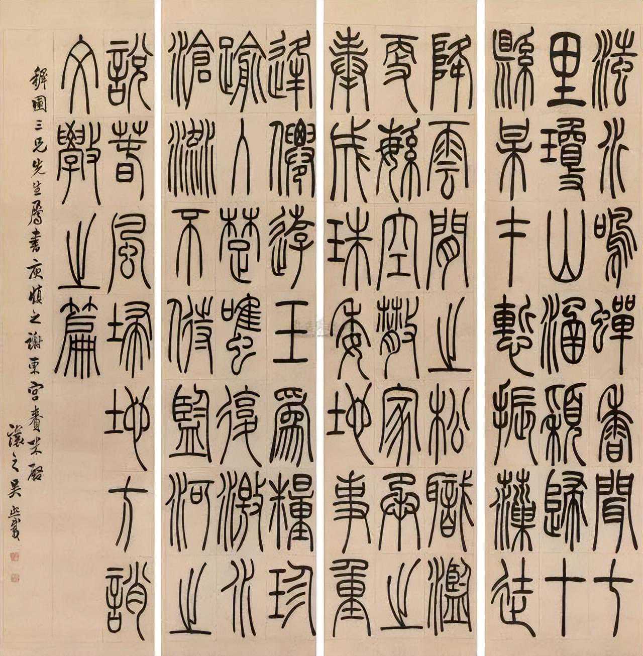吴昌硕篆书四条屏