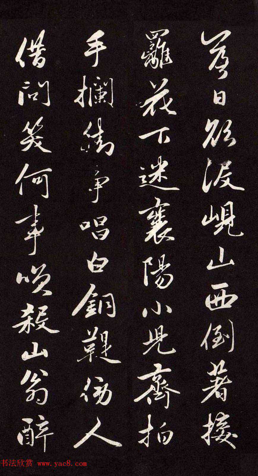 落日欲没岘山西,倒著接蓠花下迷。襄阳小儿齐拍手,拦街争唱《白铜鞮》。旁人借问笑何事,笑杀山公醉