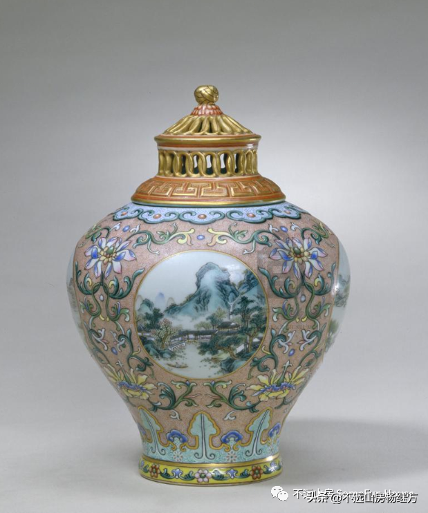 故宫博物院藏乾隆粉彩开光四季山水盖罐