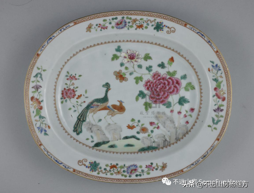 故宫博物院藏乾隆粉彩孔雀牡丹纹托盘