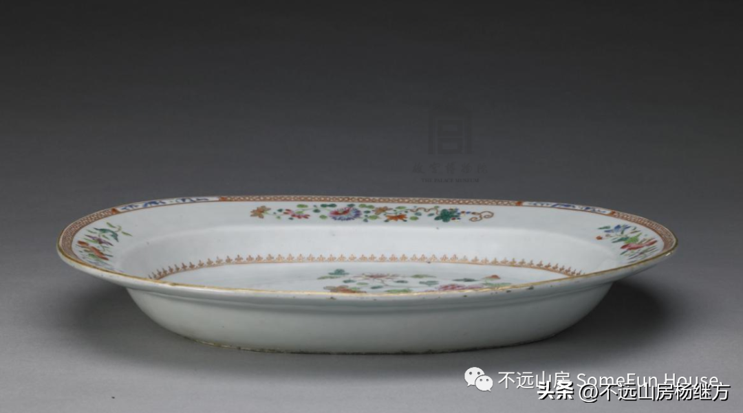 沈阳故宫博物院藏清乾隆款绿地粉彩番莲船式盘