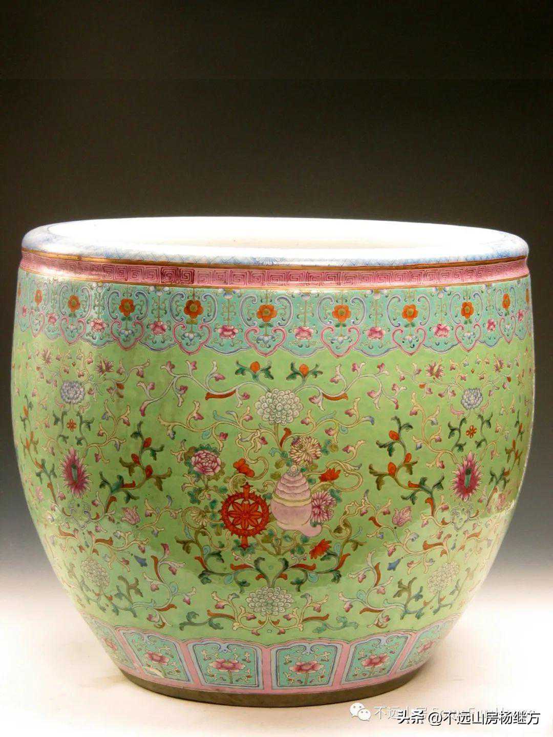 沈阳故宫博物院藏清乾隆绿地粉彩花卉八宝大鱼缸