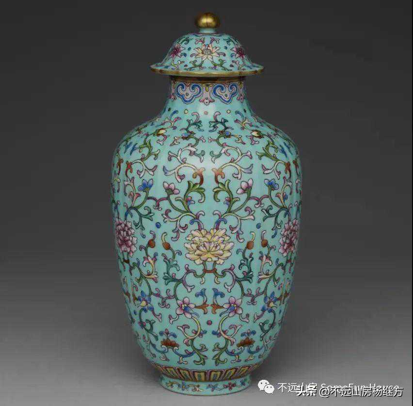 清乾隆松石地粉彩番莲盖罐台北故宫博物院馆藏