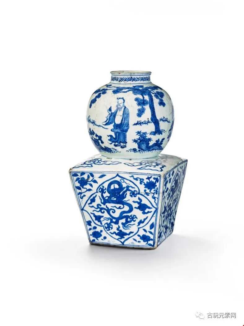 |明嘉靖·青花人物云龙纹葫芦方瓶|