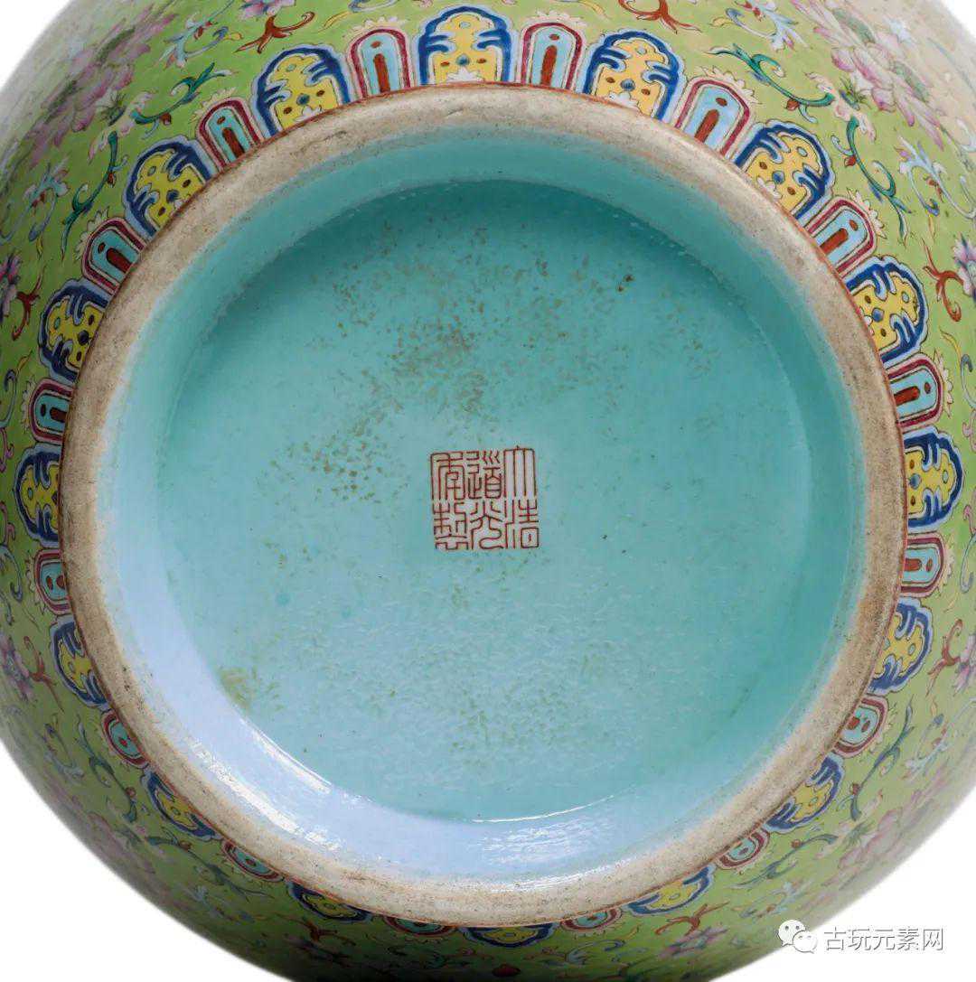 |清道光·绿地粉彩喜字缠枝莲纹双耳大瓶|