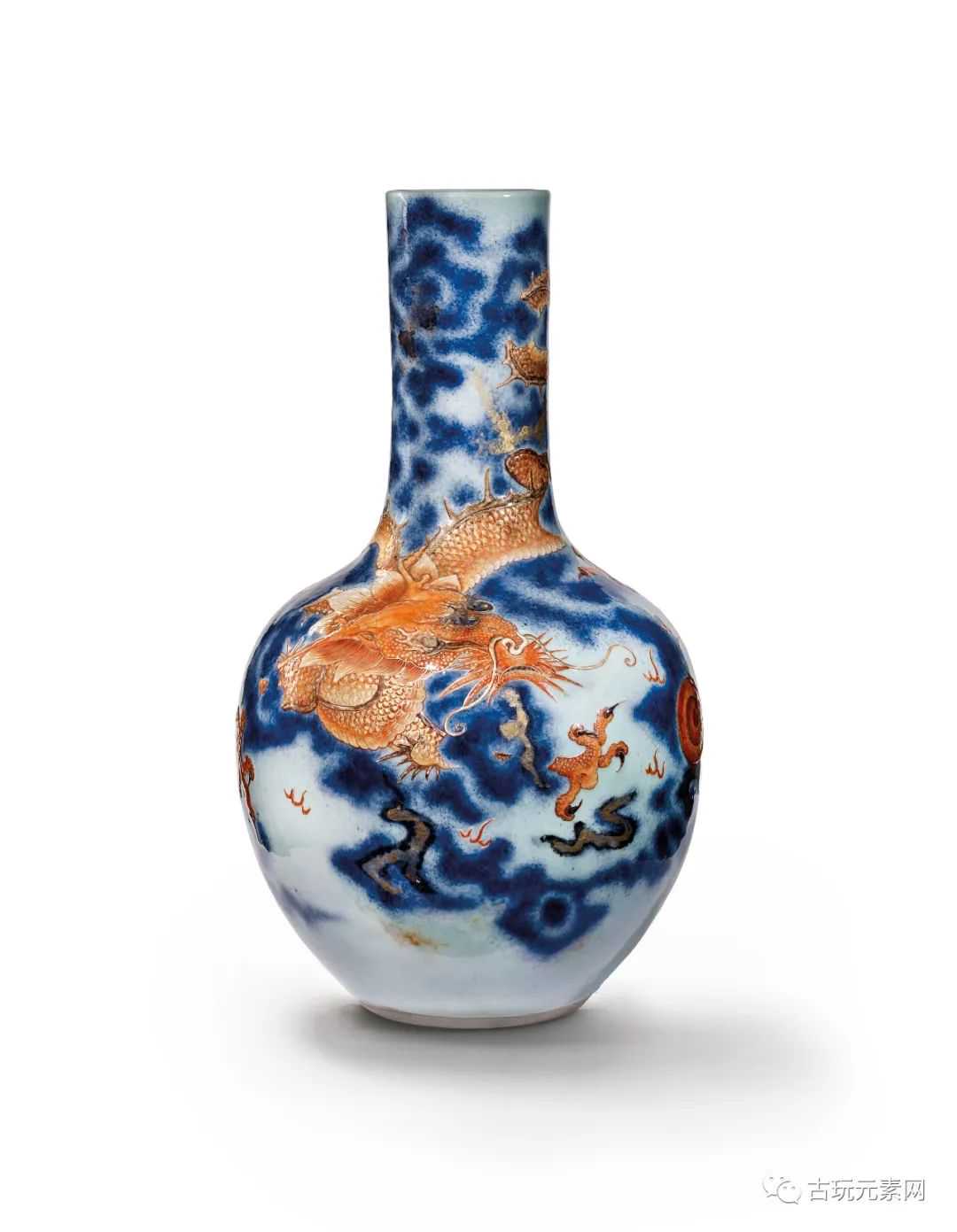 |清嘉庆·粉彩矾红描金云龙赶珠纹天球瓶|