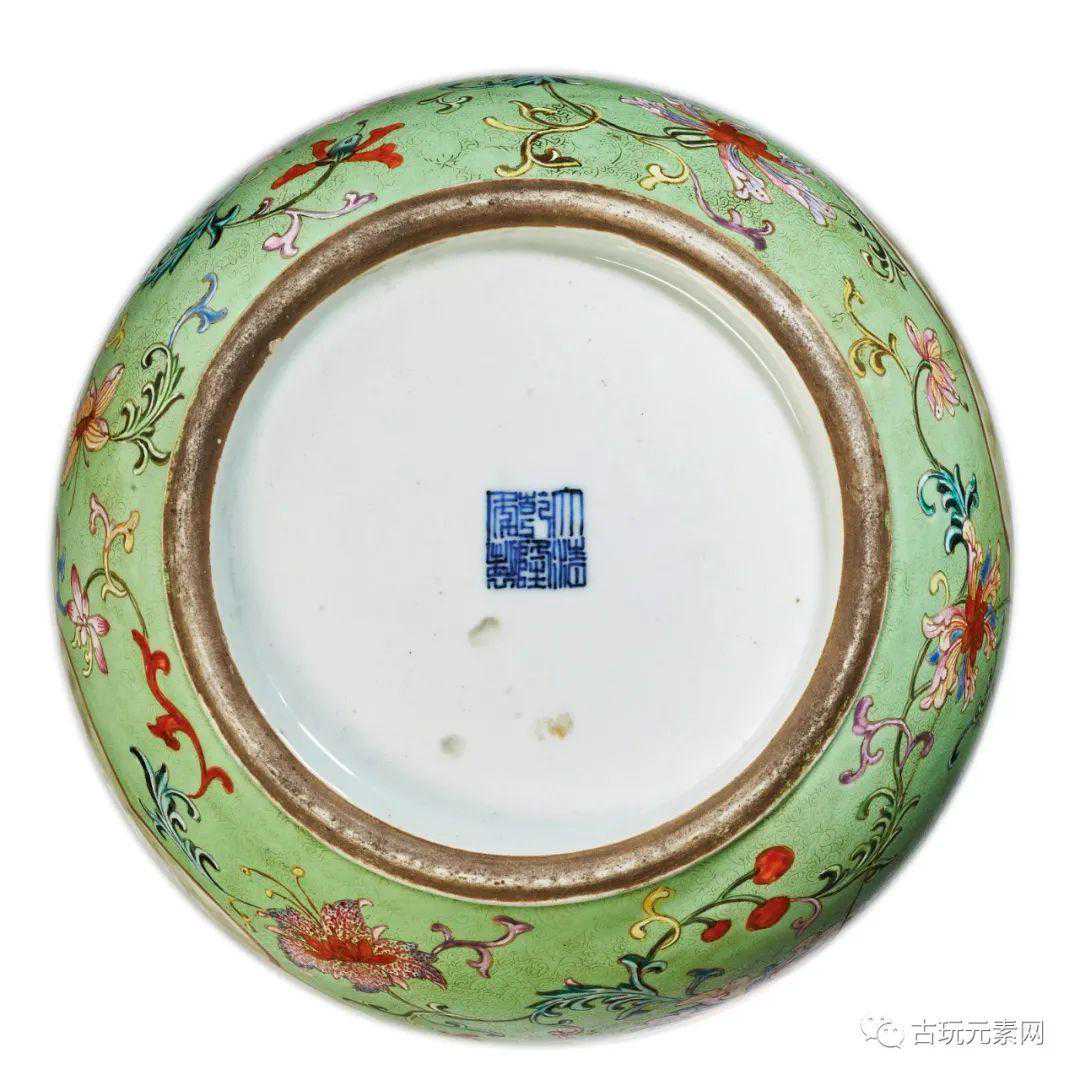 |清乾隆·松绿地洋彩缠枝蕃莲纹仿掐丝珐琅折沿盘|