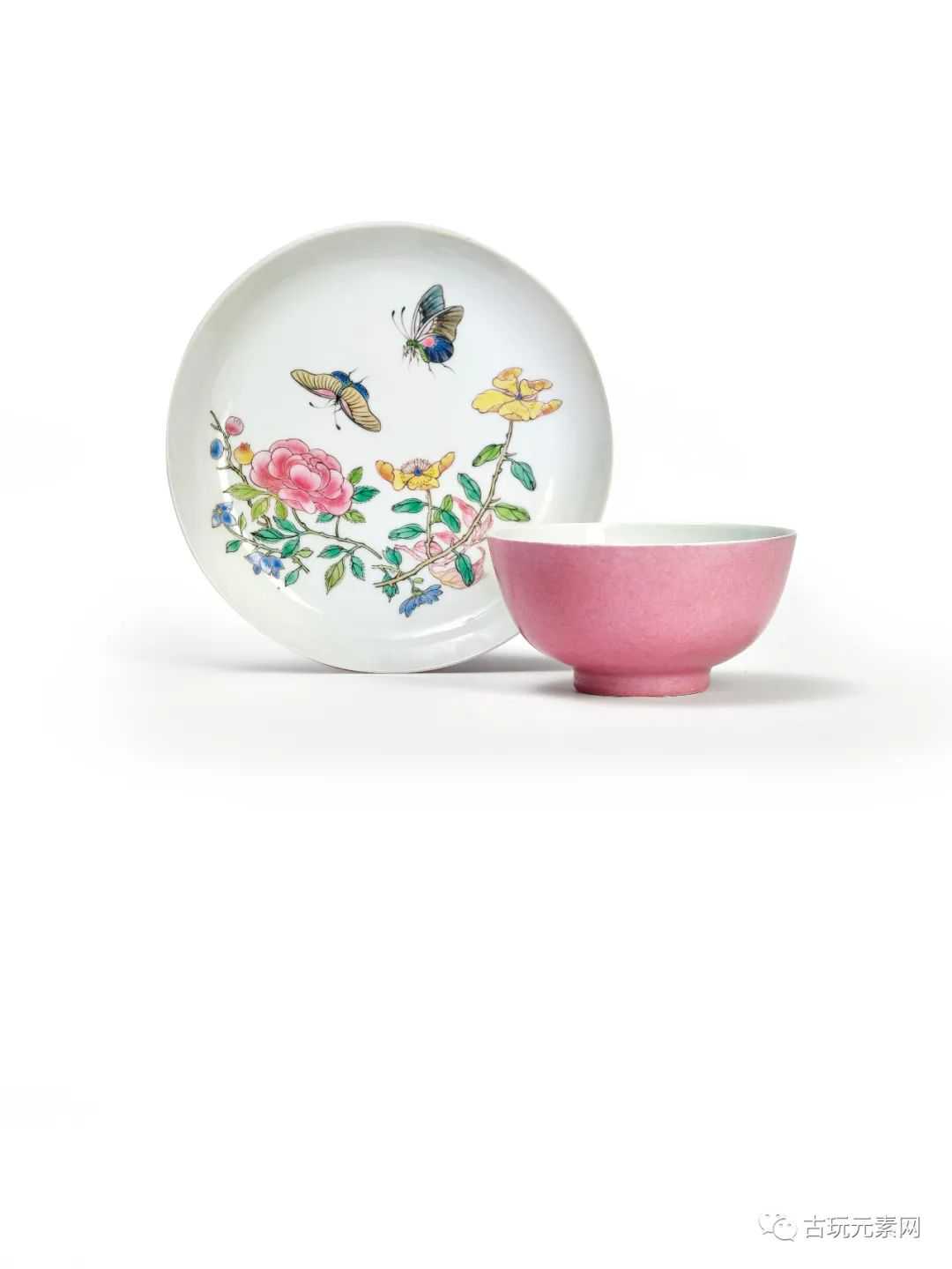 |清雍正·胭脂红釉粉彩花卉纹碗及碟|