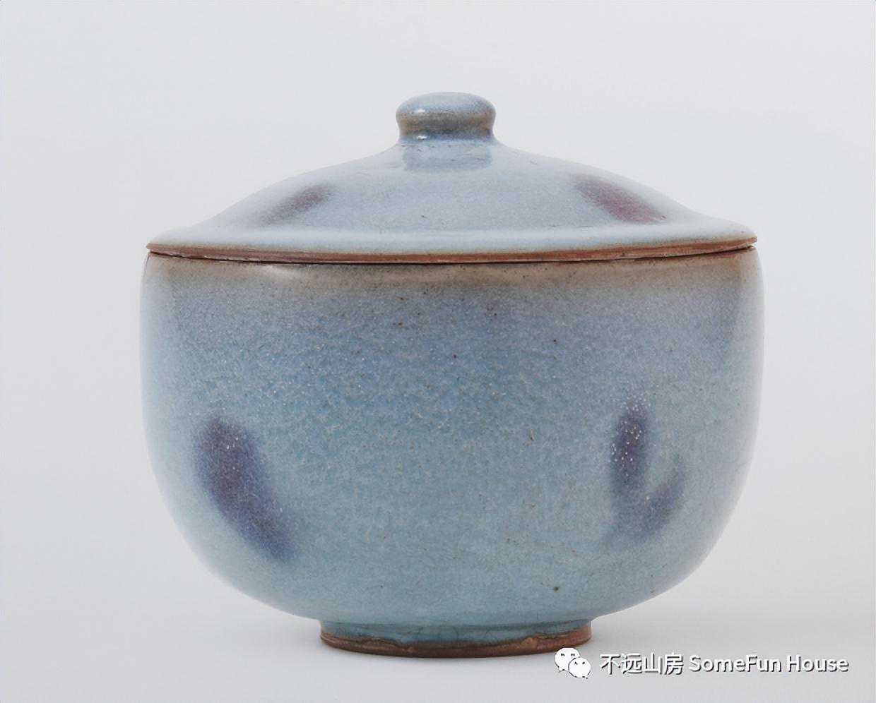 大都会艺术博物馆藏金代钧窑天青釉玫瑰红窑变鸡心盖罐