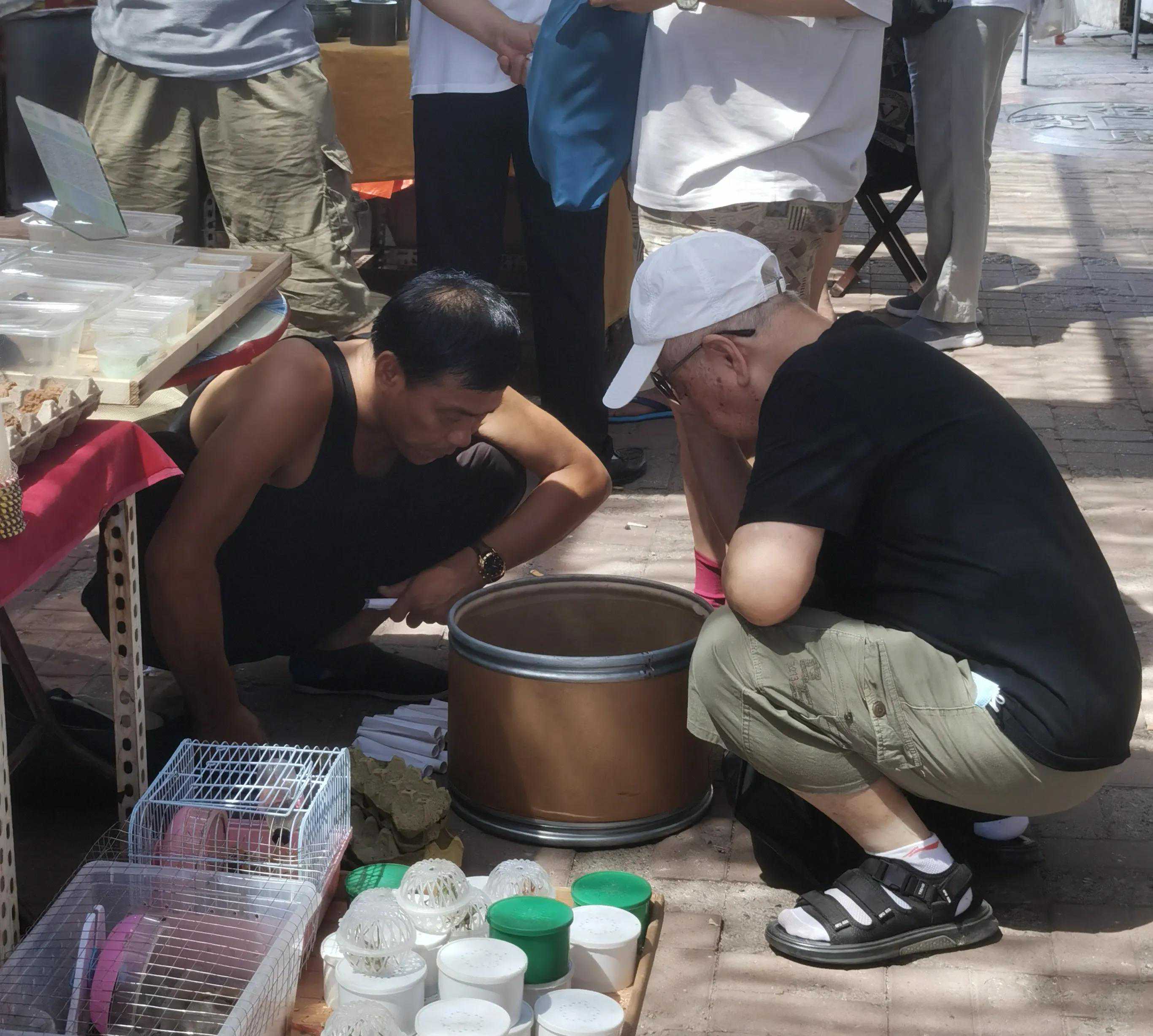 您见过这么认真的天津大爷么?他们围着密密麻麻的蛐蛐笼子,仔细揣摩,那模样,仿佛在搞科研。