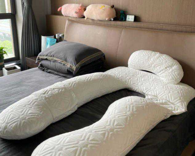 但一夜保持一个睡姿属实不易。将腰和肚子靠在U型枕上,能减轻腰部压力和腹部的下坠感,腿搭在枕头上,还能缓解水肿,越到后期作用越大!