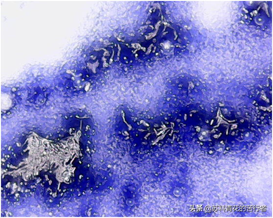 微观下的铁锈斑呈丝瓜囊状的网状纹。