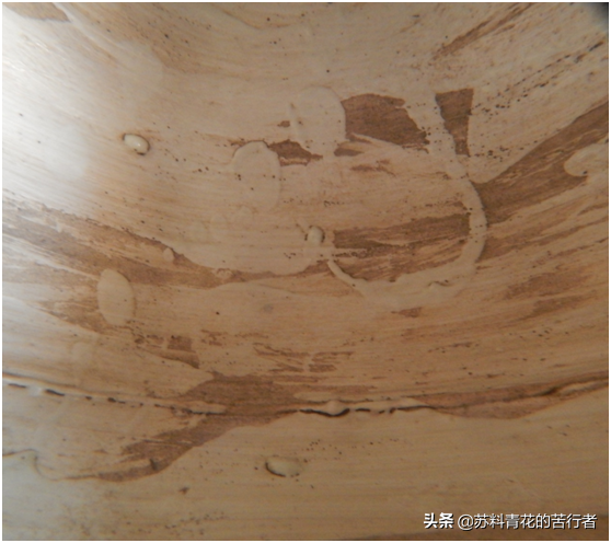 元青花草率的内部修胎、挂釉痕迹。
