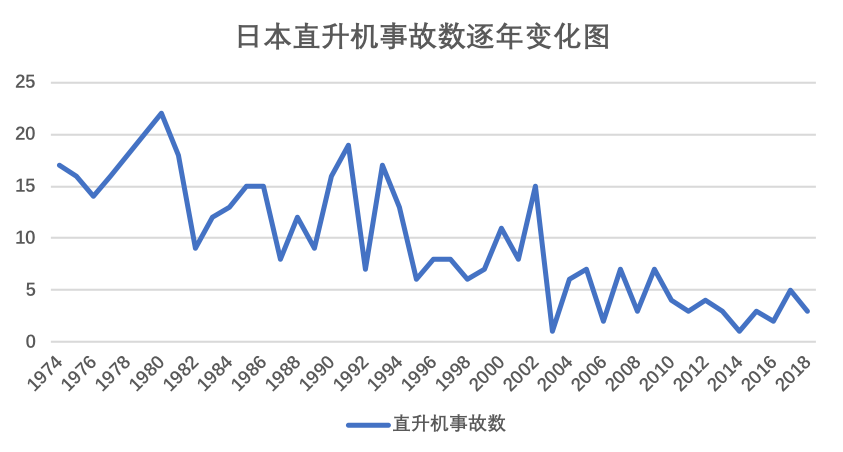 回答直升机的安全性与否,最直观的方式当然是用统计数据来解答。根据日本运输安全委员会的统计,从1974年到2018年10月25日,直升机一共发生事故436起,超过全部航空器事故件数的三分之一,是所有机种中发生事故最多的飞行器[1]。