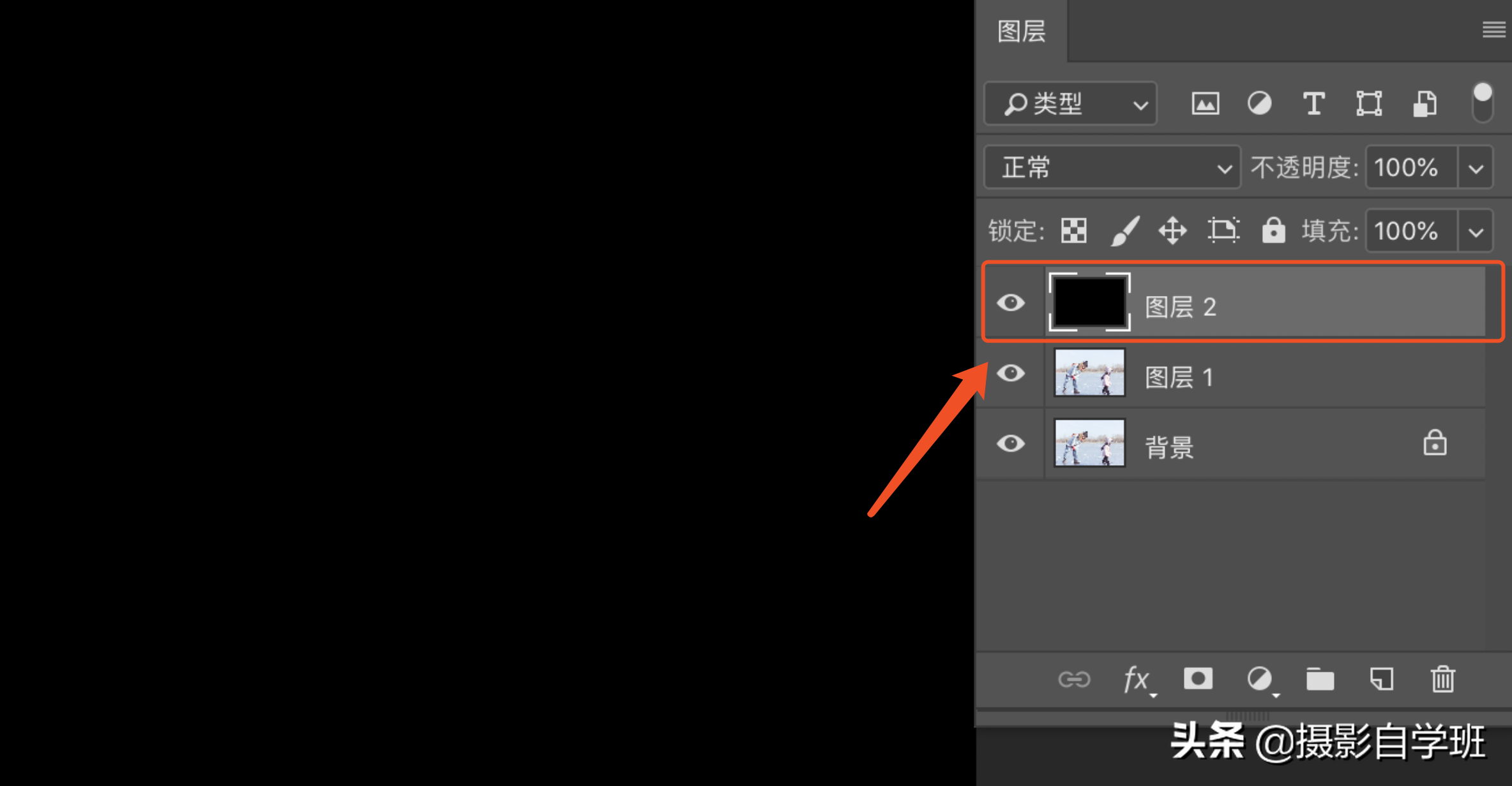 3.填充图层。我前景色设置黑色,alt+delete直接填充。