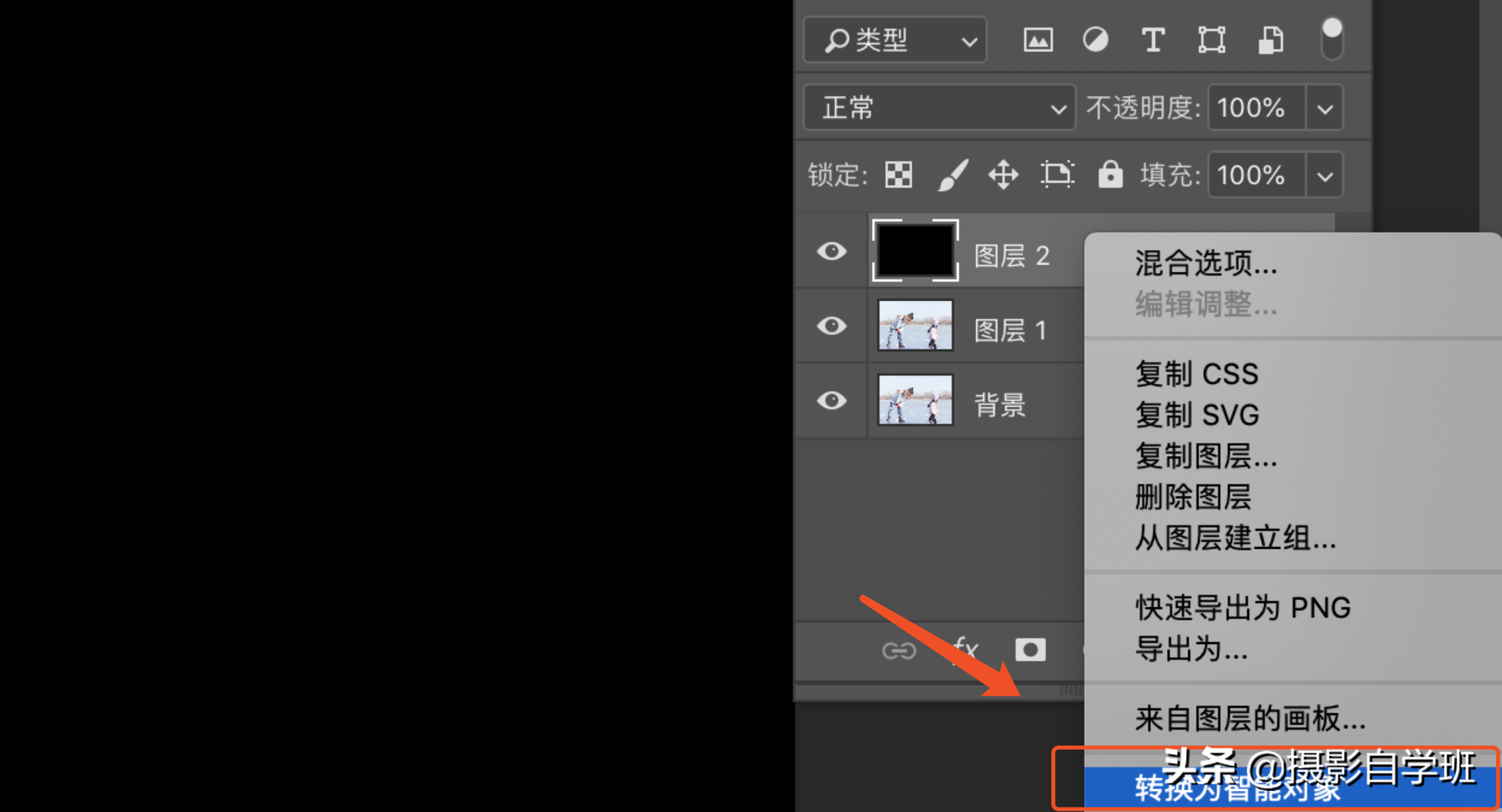 4.转换智能对象。鼠标右键,把图层转换为智能对象。有人问过我,怎么不直接添加,因为不方便修改。