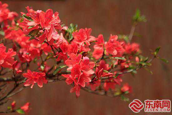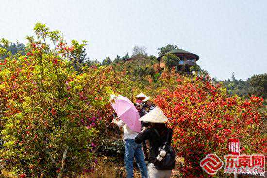 俏丽的杜鹃花盛开在新绿茶园里,趁着春日晴朗,也有不少游客前来踏青赏花。拾级而上,火红的杜鹃在微风中轻轻摇曳,置身其中,令人赏心悦目。