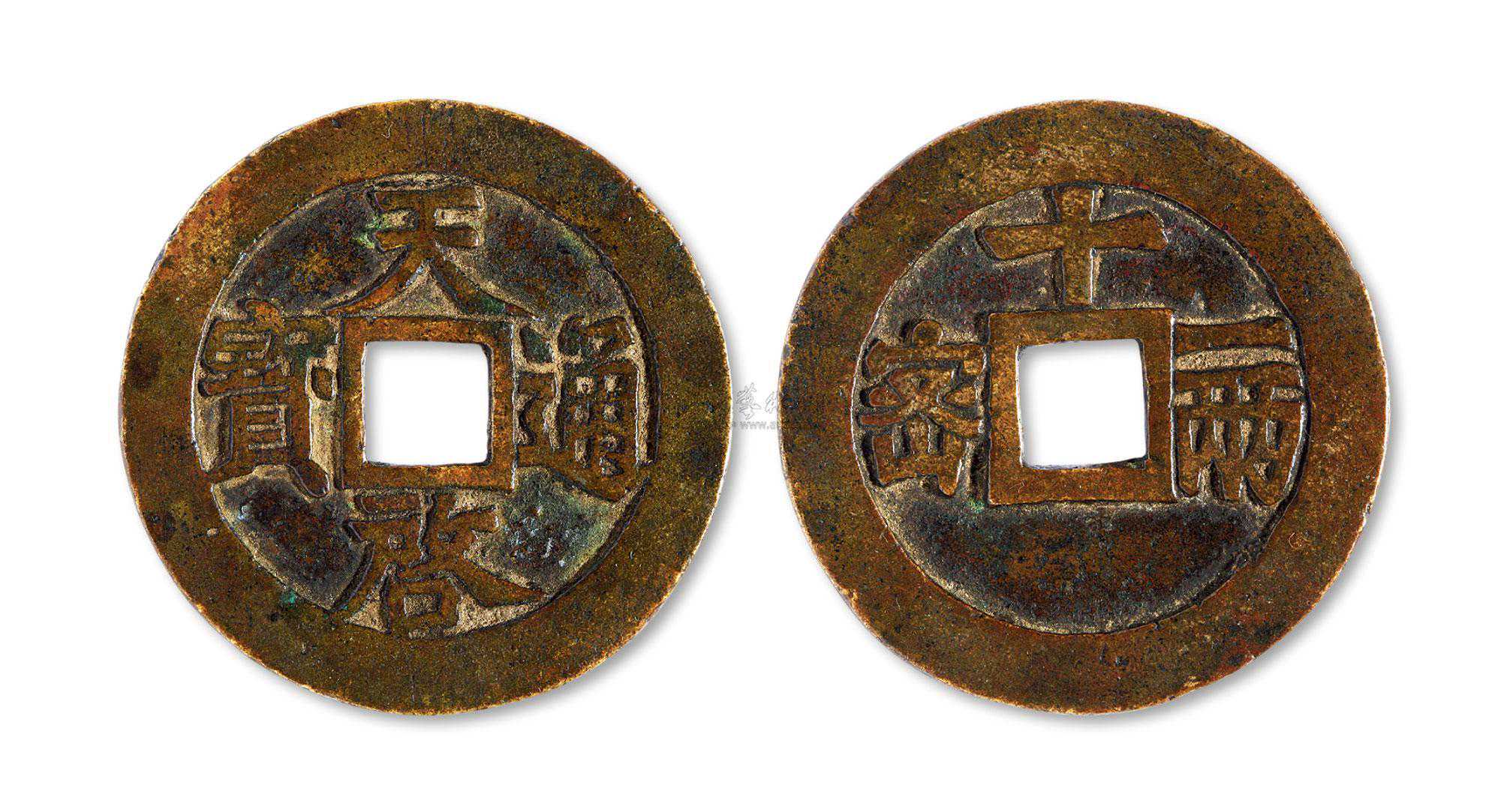 明熹宗天启元年(1621年)八月补铸完“泰昌通宝”之后开铸天启通宝。“天启通宝”初铸为小平钱,天启二年七月开铸当十大钱。天启五年十月,因官私所铸大钱过多过劣,下令停铸,并由朝廷出白银,回收当十钱,大钱铸期不过三年。